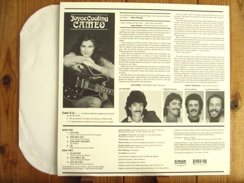 アメリカ出身の女性ジャズギタリスト、ジョイスクーリングの記念すべき初リーダー1stアルバム1988年作品。冒頭のメロウなブラジリアン・ジャズ・チューンの心地良さ、サウタダージ感溢れるスリリングなジョイスのギターとスキャット。クラブ系ファンに絶大な人気を誇る本作品のオリジナル盤は元々極小プレスで、「It's You」がコンピレーションで紹介された途端に超高額となった。
