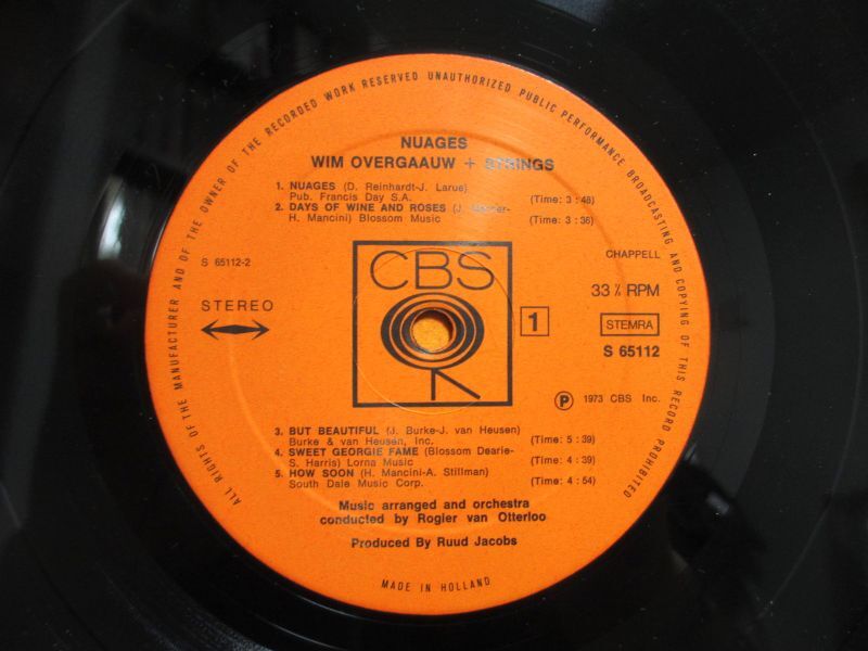 リタライスやアンバートンのバックとして活躍したオランダを代表するギタリスト、ウィムオーヴァーガウ。本作はオランダCBSに残した1973年作品。ジャンゴの「雲」や、お馴染みのスタンダード「酒とバラの日々」「But Beautiful」「Come Rain Or Come Shine」等名曲名演揃い。バラードを弾くケニーバレルの雰囲気に近いだろうか・・・エレピやストリングスをバックにしっとりと聴かせるバラード・アルバム。