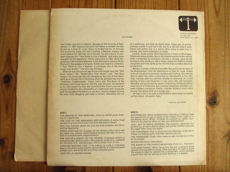 オープンC#チューニングによる12弦ギターのボトルネック奏法で有名な、レオコッケ。本作は、その彼の記念すべき初リーダー1969年録音作品。もう一人のアメリカを代表するフィンガーピッカー、カリスマ・ギタリストのジョンフェイヒーのレーベル「Takoma」からのリリース。ライクーダー辺りが好きな方にお薦め。