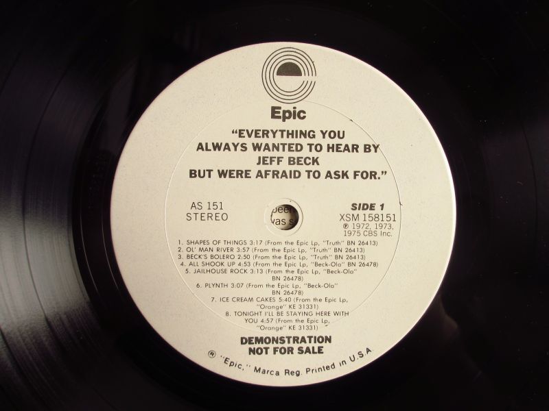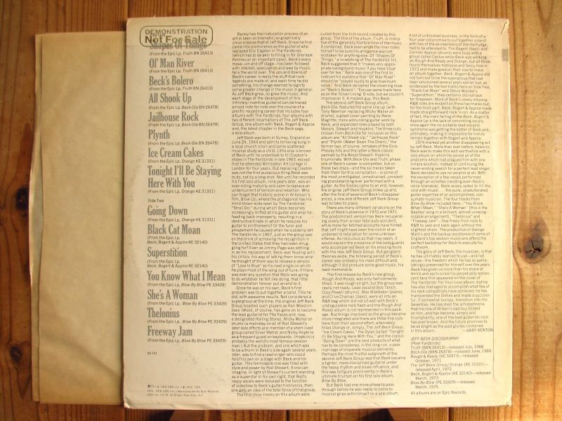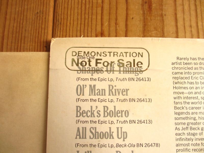 ジェフベックの「Blow By Blow」発売に合わせて全米のラジオ局やレコードショップ向けに配布された、プロモーション・オンリーの貴重盤。