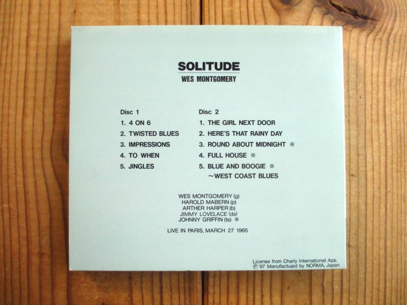 ウェスモンゴメリーによる1965年のパリでのライブ録音作品。本作は、当時フランスのレーベル「BYG」がORTFに残る様々なレコーディング・テープを買い取り、アルバム化を行う予定だった。しかし何らかの問題が起こり何故かフランスでは発売されず、当時日本での契約をしていた東宝芸音で発売された曰く付きのアルバム「ソリチュード」に、未発表3曲を追加収録した世界初のコンプリート盤。