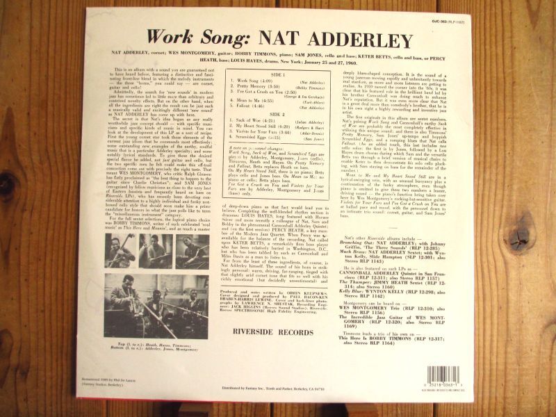 セッションには、ほとんど参加しなかったことで有名なウェスモンゴメリーが参加した数少ないアルバム。コルネット奏者ナットアダレイが「Riverside」残した1960年作品。ナットアダレイ最大の名曲スタンダード「Work Song」等収録。
