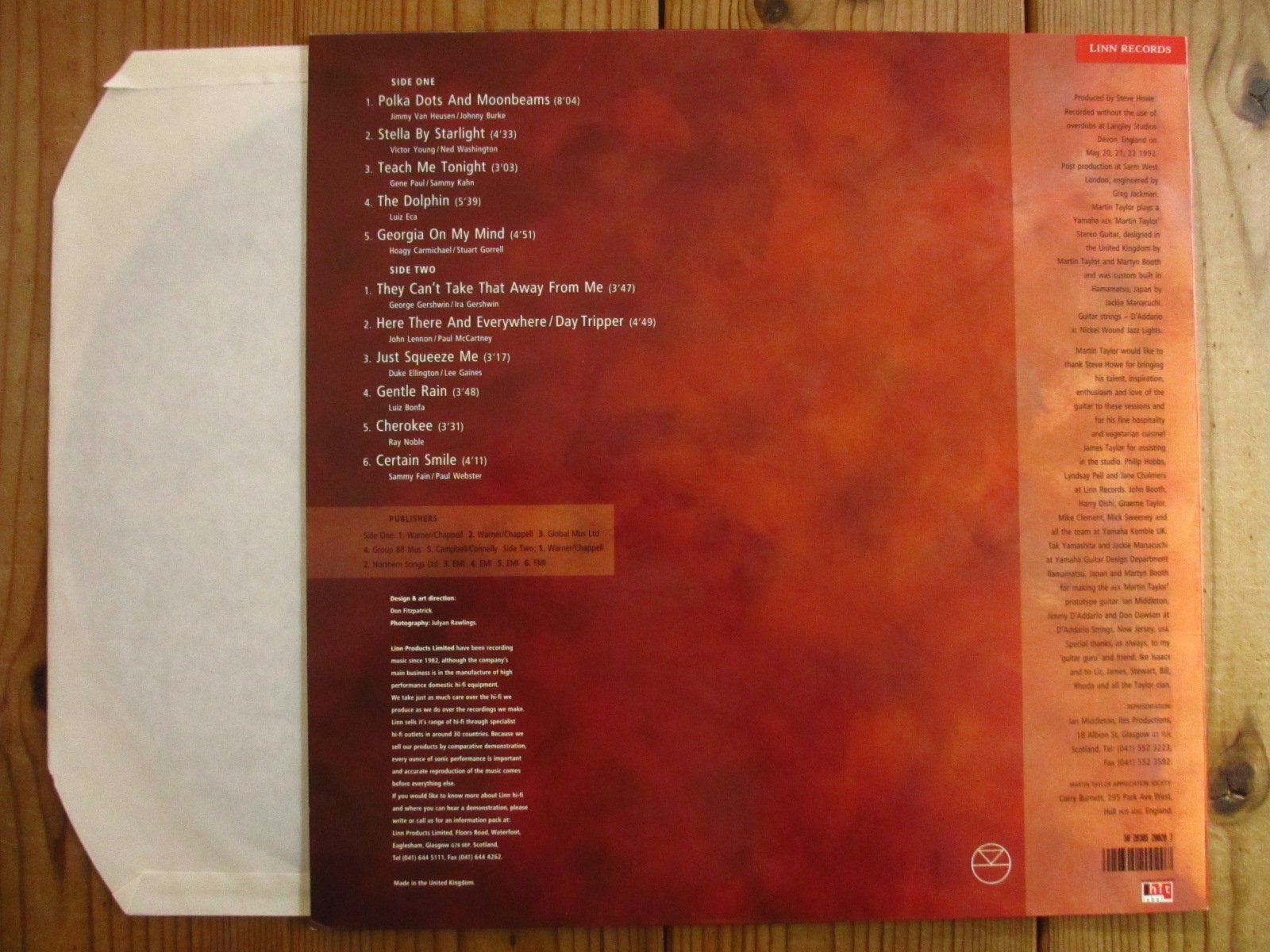 本作は、イギリスの高級オーディオメーカーのレーベル「Linn」に残した1992年作品。マーティンテイラーの真骨頂である、全曲ソロギターによるスタンダード曲集。お馴染みのスタンダード「Polka Dots And Moonbeams」「Stella By Starlight」「Georgia On My Mind」「Cherokee」、ビートルズの「Here There And Everywhere / Day Tripper」等収録。マーティンテイラーの入門盤にも最適なソロギター名盤にして優秀録音の高音質盤。