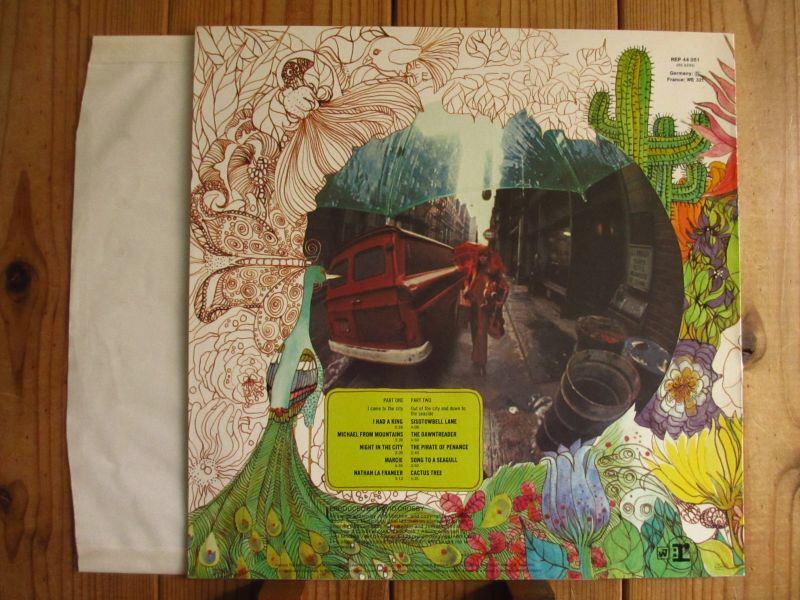 女性SSWの草分け的存在、ジョニミッチェルの記念すべきデビューアルバム1968年作。不思議なコード進行のアコギをバックに、独特のメロディーラインを弾きがたる唯一無二の音世界。静謐なアルペジオとリバーブの効いた「Michael From Mountains」、絵画的な音響を思わせる「Nathan la Franeer」、スティーヴンスティルスがエレクトリックベースで参加した「Night in the City」等、美しい楽曲が並ぶ。聴けば聴く程ジワジワと引きつけられる、1stにしてコンセプチャルな世界観を創りあげたフォーク史上屈指の名作。ちなみに、彼女自身が描いたジャケットの絵には、タイトルが隠し文字としてデザインされている。