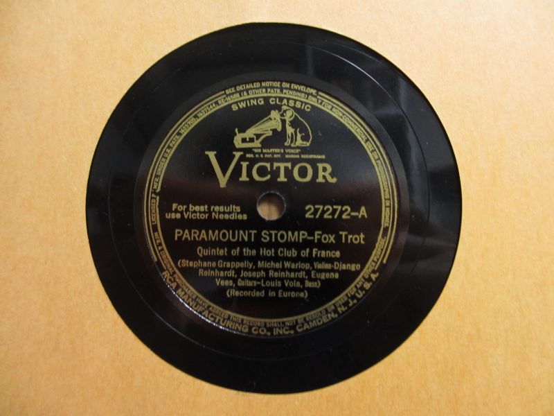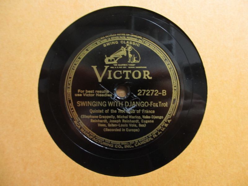 ジャンゴラインハルトとステファングラッペリ率いるフランス・ホット・クラブ五重奏団による演奏。アメリカ「Victor」レーベルの78回転SP盤。LP盤やCDでは感じることのできないジャンゴやグラッペリの鮮明な音色が聴けるSP盤ならではのド迫力の音圧が堪能できる。
