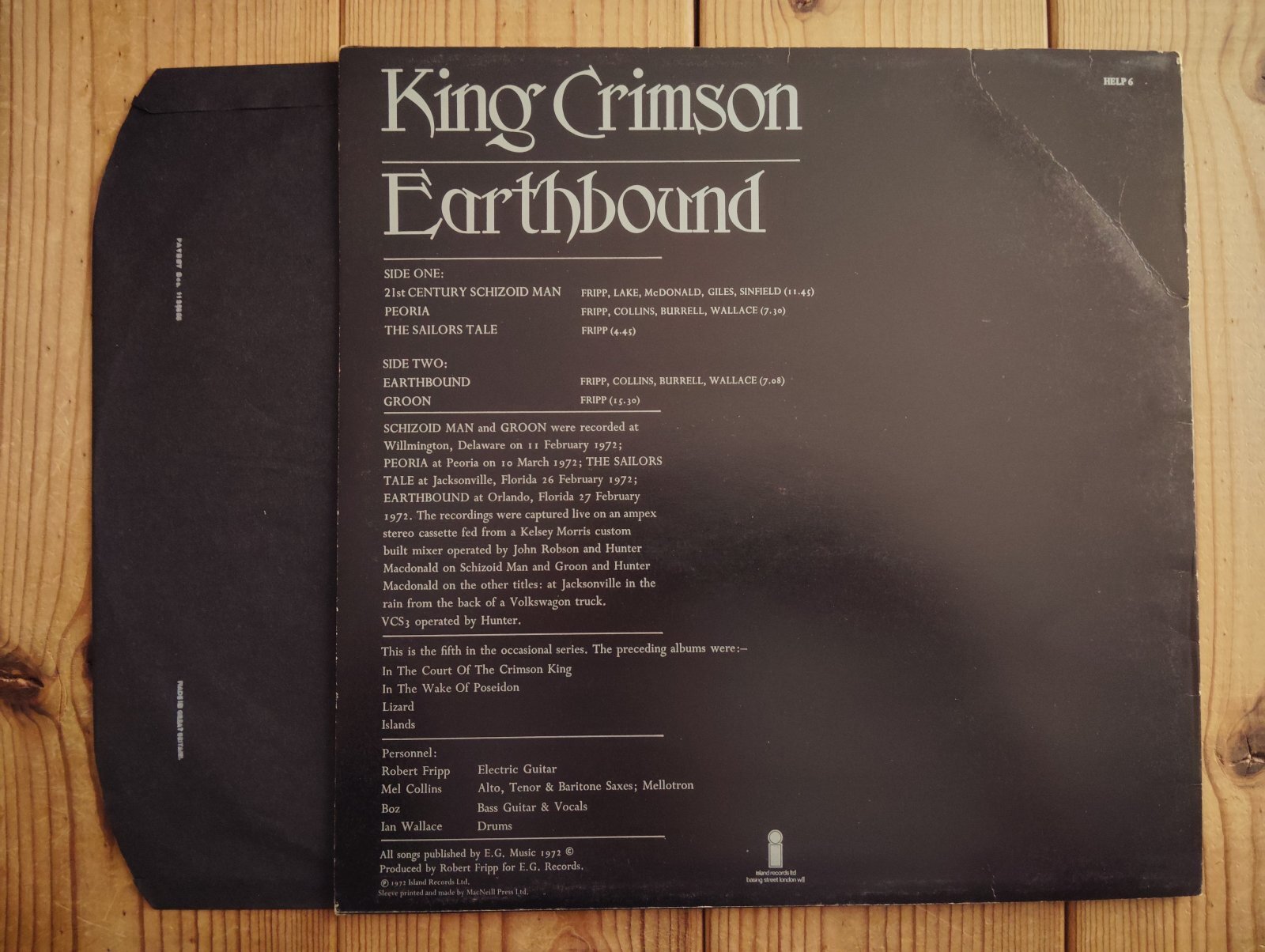 King Crimson / Earthbound [Island Records / HELP 6]