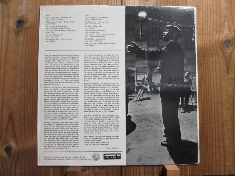 ドイツはハンブルグでの1962年10月18日ライブ録音盤。ちょうどブルースマンたちが“発見〜再発見”され、世界的にブルースやフォークが盛り上げっていった時期に行われたフェスティバル。Tボーンウォーカー、ジョンリーフッカー、メンフィススリム、ソニーテリー、シェイキージェイク、ブラウニーマギー等が参加。