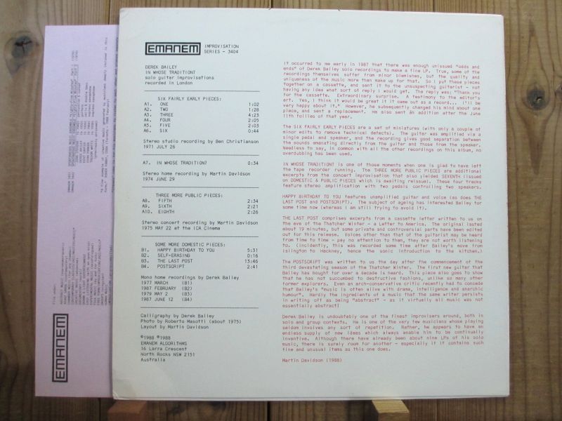 Derek Bailey / In Whose Tradition? [Emanem / 3404]