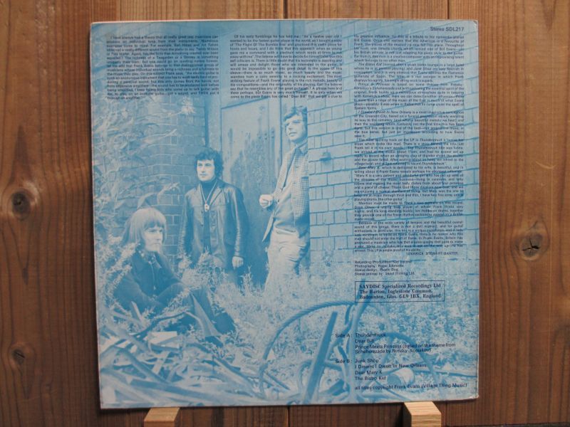1970年頃から活動している知る人ぞ知るイギリス出身のギタリスト、フランクエヴァンス。本作はその彼の2作目となる1971年作品レア盤。内容はわりと4ビートのモダンな演奏から、いかにもブリティッシュジャズロック的な激しい演奏まで。ギタートリオ編成で、全曲彼のオリジナル曲。テクニックもあり単音での速弾きは、ジョンマクラフリンを思わせるほど。