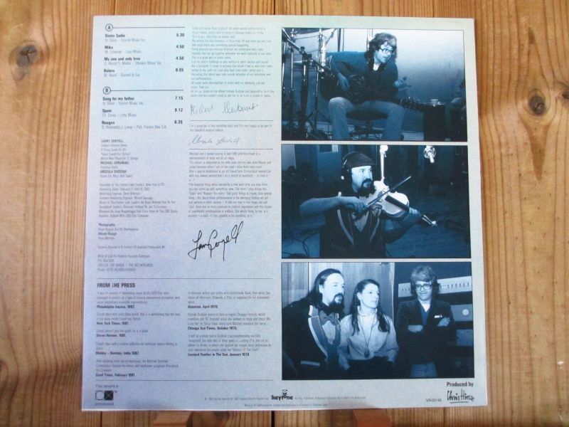 元祖ジャズロックギタリストのラリーコリエルと、ポーランドのヴァイオリン奏者マイケルウルバニアクによる1982年発表のデュオ作品。面白いジャズロックやワールド系作品等を多く残しているオランダのレーベル「Keytone」から。お馴染みラヴェルの大作「Bolero」、ホレスシルバーの「Song For My Father」、チックコリアの名曲「Spain」、そしてジャンゴの「Nuages」等収録。