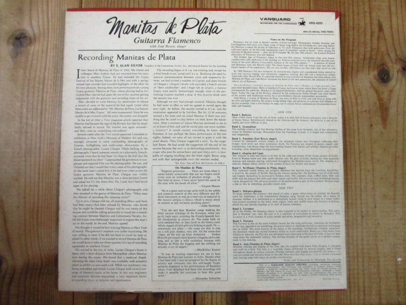 フランス出身のフラメンコギタリストのマニタスデプラタ。アメリカのレーベル「Vanguard」に残した1965年盤。ジプシーキングスのトニーノバリアルドは息子にあたる。生前はピカソやダリ、コクトーなどの自宅に呼ばれて演奏していた。しかし「賭けと女」で身を崩して、野垂れ死に状態で2014年この世を去った。ワイルドで切れ味鋭いギターが魅力。
