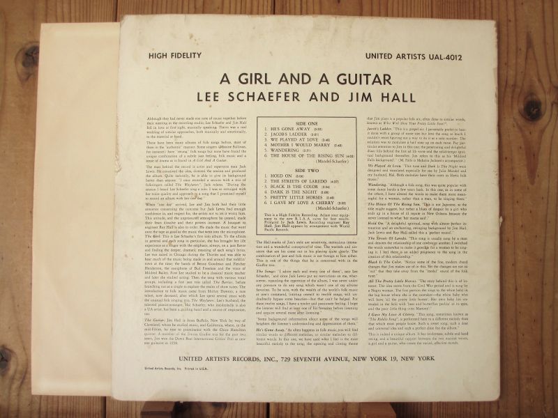 Lee Schaefer And Jim Hall / A Girl And A Guitar [United Artists Records / UAL 4012]