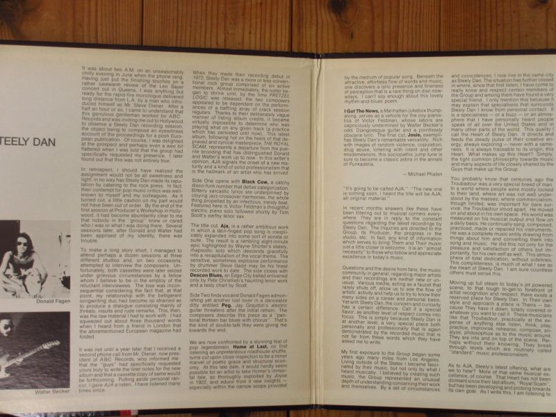 言わずと知れたスティーリーダンの大ヒットアルバム通算6作目にあたる1977年作品。グラミー受賞した歴史的名盤中の名盤。ギターにラリーカールトン、リーリトナー、スティーブカーン、ジェイグレイドン、ディーンパークス、デニーディアス、サックスにウェインショーター、トムスコット、ビルパーキンス、ベースにチャックレイニー、ドラムにスティーブガッド、ポールハンフリー、バーナードパーディ、ピアノにジョーサンプル、ヴィクターフェルドマンという錚々たる超豪華な面子が参加。